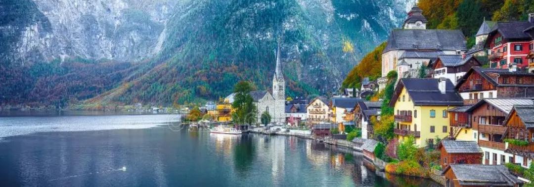 哈尔施塔特湖被达赫斯坦阿尔卑斯山脉环绕,湖光山色交相辉映,构成如诗如画的美景。清晨的湖面不时笼罩着一层薄雾,傍晚的湖岸则被红树黄叶点缀,四季景色各异,各具魅力。