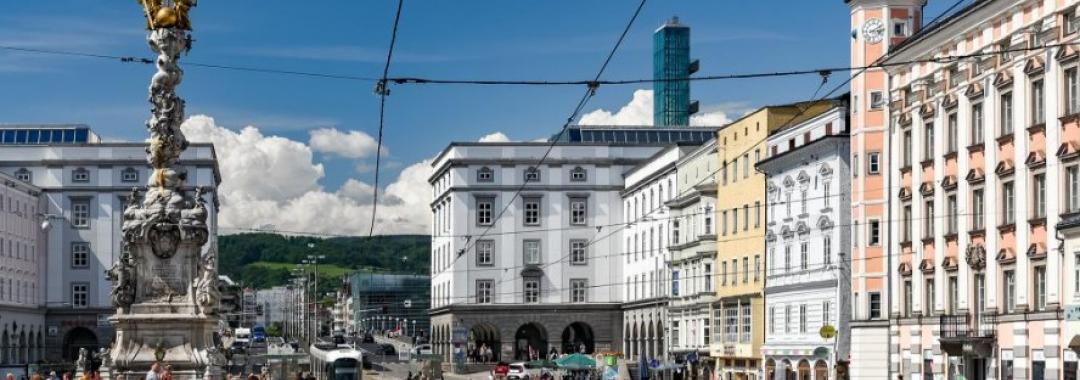 林茨中央广场(Hauptplatz)是林茨的中心,面积约为 13,200 平方米,是奥地利最大的封闭式广场之一。 广场中央有一根高 20 米的圆柱,建成于 1723 年,令人惊叹的中世纪建筑营造出独特的氛围,五颜六色的外墙让游客赞不绝口。。